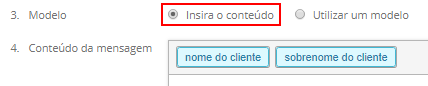 - Para criar uma nova mensagem, certifique-se de que campo 5. Modelo esteja marcado como Insira o conteúdo: